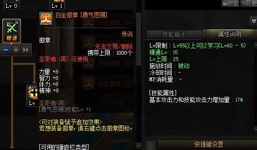 1、DNF奶爸审判白金徽章选勇气恩赐;