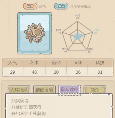 1、在游戏中,罗马十二面体可以通过抽奖获得、八卦炉许愿获得、开启学徒手札获得;