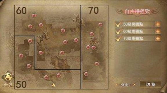 自由港监狱50~79级挂机分布图: