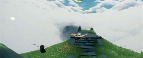 1、来到“云野地图”,从跳台那里一直往前飞,穿过由云构成的洞;