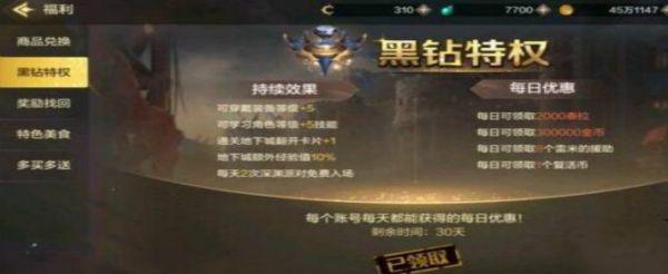 1、兑换流程:a、创建角色升级至7级,b、充值30元换取黑钻;