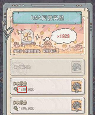 3、这里会显示玩家的基因强度和目标数量,比如1929/2000,就是说明玩家的DNA积分是1929点,通过这个方法就可以顺利的查到这个基因强度;