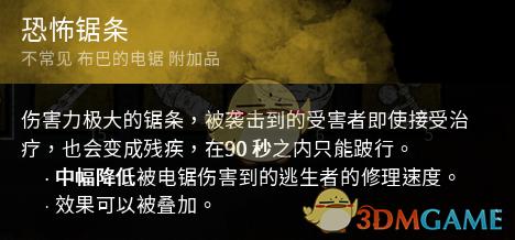 说到底就是为了控场而用的配件,重伤的大家都懂,等于送了一个猪头,估计大家比较在意修电机减少多少,我曾经试过一次两个一起带,黄色加紫色,然后被锯中的人修电机大约多了20-25秒左右,估计你会觉得很牛逼吧,但是你想想,被你锯中的人前30秒左右应该在钩子上吧,然后20秒左右的治疗吧,就余下40秒了,再花15秒左右找电机,余下的时间大概也就20秒左右的限制,聊胜于无.,再加上紫段后要打针对,你针对他他还有时间修机吗,个人感觉用处不大,巴布缺的是怎么锯倒人而不是锯倒人之后怎么样.