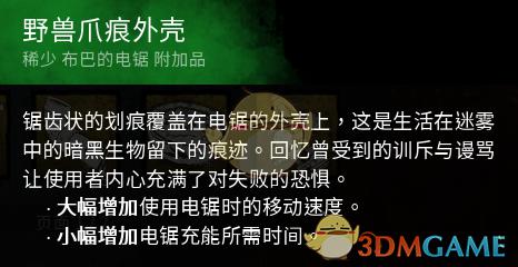 说实话,他说减少冷却时间我还真没感受到,难道是我认为的冷却错了,冷却应该就是锯完那一个收据动作,反正我两个一起带都感觉没啥区别,如果有了解的大神可以在楼下说明一下冷却究竟是不是收据动作,也是带了等于没带系列的配件,绿色的配件主要也是要他小幅度减充能,血网看到随便点吧.