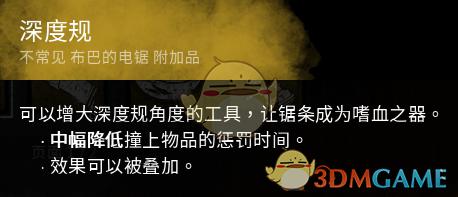 特别推荐萌新刚开始玩时候带的配件,配合上指南书,做到了快速拉锯,会在很多本来锯不到的窗口勉强锯倒人,也方便了板前拉锯的方便程度,特别是遇到光剑侠,你抬头拉锯他是照不到你的,当你锯完板子他还在傻傻地继续照你,这时候快速拉锯结局很明显。
