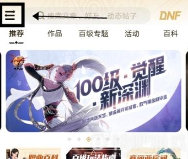 2、第一次进入DNF助手需要登录QQ账号,登录完成后点击左上角的菜单按钮;