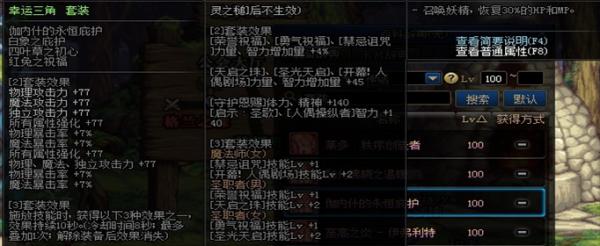 2、幸运三角是100级的套装之一,该套装拥有神话级装备部件。