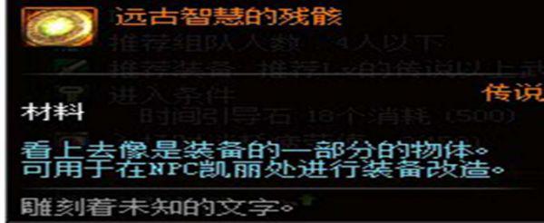 1、在智慧的引导地下城中击破地图末端的柱子时有几率掉落远古智慧的残骸;