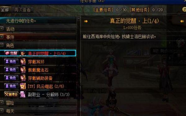 1、三觉任务叫做“真正的觉醒”,玩家可以在任务手册中接取任务,三次觉醒任务分为上、下两个阶段;