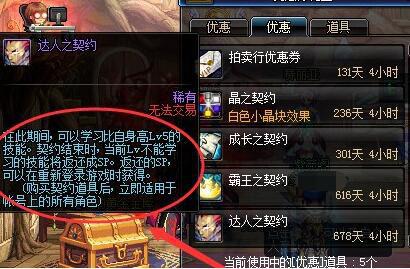 2、玩家使用达人契约后可以学习比自身等级高五级的技能,并且在契约结束时会返还SP。