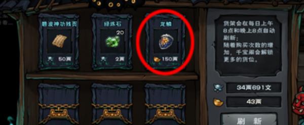 4、龙鳞可以买一个就够了,不急的玩家可以先买乌缕,丹药。