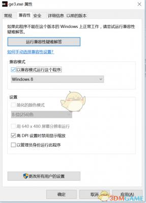 ③点击游览本地文件,会见到游戏本体文件夹,找到ge3.exe,右键属性,找到兼容性选项卡,如下图