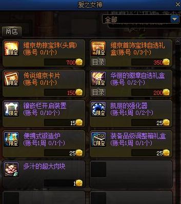 2、玩家可以在爱之女神的商店里用维京硬币兑换维京劫掠宝珠(头肩)、维京首饰宝珠自选礼盒、传说维京卡片、华丽的徽章自选礼盒、镶嵌栏开启装置、凯丽的强化器、便携式锻造炉、装备品级调整箱礼盒和多汁的超大肉块。