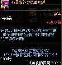 在洞察之眼困难模式中可以获得被蚕食的灵魂,该道具可以用于购买随机史诗袖珍罐、随机智慧的产物设计图袖珍罐、时间结晶礼盒、铭刻之石等道具。