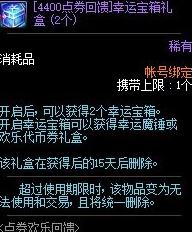 2、开启4400点券回馈礼盒可以获得2个幸运宝箱;