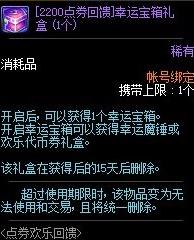 1、开启2200点券回馈礼盒可以获得1个幸运宝箱;
