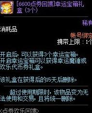 3、开启6600点券回馈礼盒可以获得3个幸运宝箱。