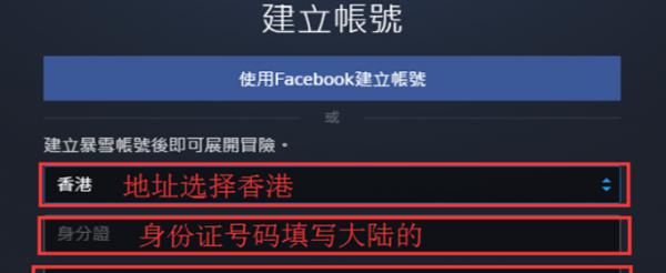 3、加速后启动国际服战网客户端,选择注册暴雪账号,注册地区选择香港,香港地区的身份证号与大陆地区身份证共同,用自己的身份证即可注册,填写需要的内容即可完成账号注册。