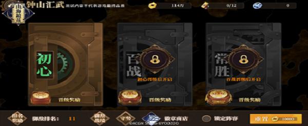3、钟山汇武分为3阶段,分别为:初心、历练、百战,每层匹配4位对手,每次可自由选择所要挑战的对手,每次挑战需消耗1张挑战券。