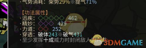此功法消耗 29% 架势 和 71%提气(即内伤占比达到了71%)