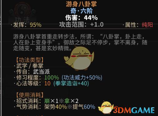 此功法消耗为 40%架势和 60%提气 (即内外伤占比6:4)