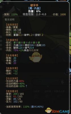 《太吾绘卷》中的武功非常的复杂,它需要各方面都支持的情况下才能发挥出最大的战斗力,一门武功它的发挥程度和属性于内功的契合度、武学的研习程度、主角自身属性、武器的加成、某些技艺的造诣深度等等方面都有关系,那么这功法发挥高低又改变了什么呢?让我们一起来看看吧。