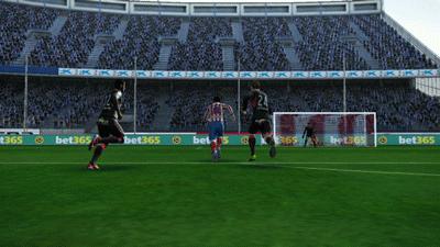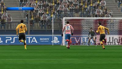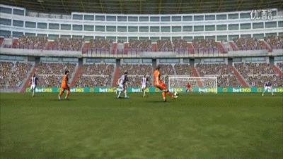 中锋回传后立即按R2高速前插,中场接球过顶直塞,力量按满!射门前按住R2然后打远角,轻点射门,内脚背搓射效果就出来了,一道还算漂亮的贴地弧线球,死角~