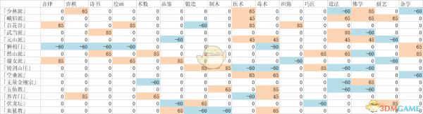 技艺和武学资质分开生成,资质生成按照表格中从左到右进行,分四档