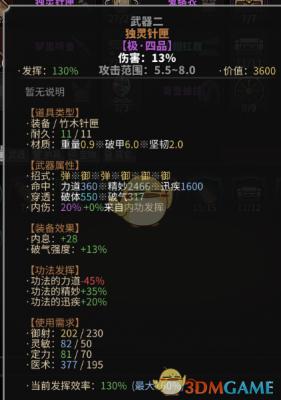 首先,我们可以发现武器的发挥值其实是可以超过百分百的,然后我们也会发现,一个人的武学资质+造诣要达到让武器发挥百分百甚至更高的数值,势必就要将对应的武学功法研习到超越要求数值的高度。以上图的峨眉超阶神功为例,要发挥百分百的效果至少要令各数值总和超过1500以上,我们去掉悟性和定力两个天生数值需求以及初始的一定双技艺资质,我们要发挥到百分百的属性,内功资质+造诣至少要在800-900以上。而峨眉一排的功法全部通读下来你最多只能获得280的造诣值,就算天赋极高,也最多是在400左右,我们需要用其它门派的内功典籍去填这个500范围数值的巨坑,显然会是一个漫长且难以完成的辛苦工程。而这还仅仅是内功的需求,再算上对应等级的绝技,身法,以及攻击性武学,这个数字将会被不断扩大,用武功造诣单纯的去填发挥值的做法越到后期就越加显得难以为继。
