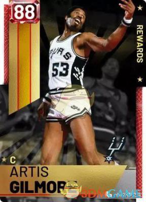 ABA传奇中锋阿蒂斯·吉尔摩,曾被贾巴尔誉为防守自己最成功的男人。这张红卡的进攻能力很差,几乎没有任何投篮能力,而且扣篮也不是很强,主要依靠上篮(92)和低位背打(背打93、勾手84)来得分。不过吉尔摩的防守确实不错,2米18的身高加上90盖帽,将能起到很好的护框效果。