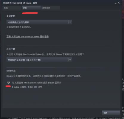 最近《太吾绘卷》在更新后,玩家们在上传云存档的时候很容易损坏存档。解决方法:在Steam库右键属性,点击最上方更新,最下方有Steam云标签,把对号取消就可以关闭云存档了。