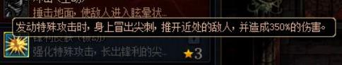 2、二星级别点出:冲击,主动技能,CD35秒;用力捶击地面,造成485%的伤害,然后强制控制敌人眩晕5秒;
