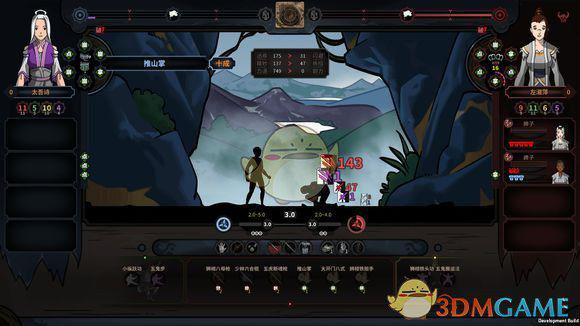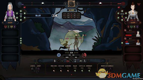 武功发动默认会打出三招,分别代表三系。其武功三系的格子代表这一系占功力几成(比如我这个推山掌是3,2,5占比)。全部都没被格挡就会触发十成爆伤,否则会不了了之。