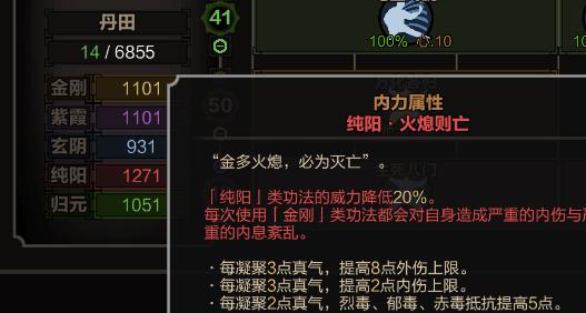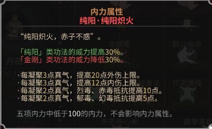 纯属性内力提高本属性功法威力30%,降低主属性所克制属性功法30%威力