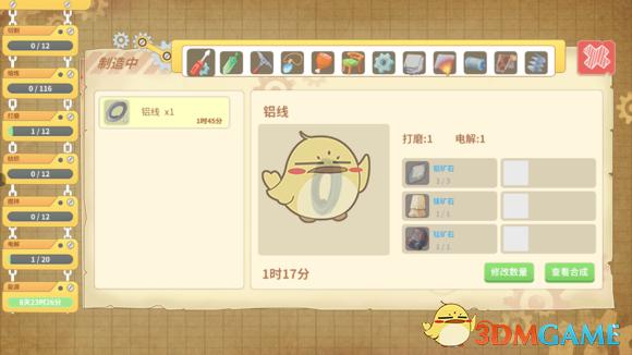 请注意每图中的两个时间:实际时间与计划时间不同,而且是多于计划时间。我的工厂可是满级加速的啊,同样都是用矿石做铝线,我不用工厂才1时,你这1时45分什么鬼。