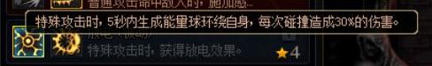 4、四星级别点出:放电,被动技能,特殊攻击时,5秒内生成能量球环绕自身,每次碰撞造成30%的伤害;