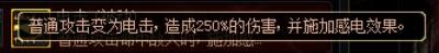 3、三星级别点出:电击,被动技能,普通攻击变为电击,造成250%的伤害,并且对目标施加感电效果;