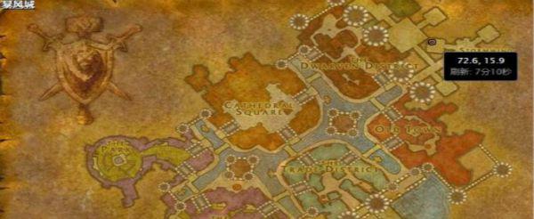 8、萨缪尔森少校位于暴风城地区,坐标(72.6,15.9)。