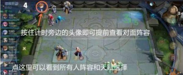 2、玩家若是想要看其中一位的布阵,手指移到对面的头像上,长按住头像就会跳转到对方的棋盘上,这样就可以看到对方的阵容了;