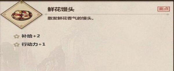 2、鲜花馒头:补给+2、行动力+1。