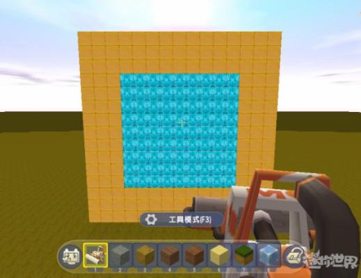 替换操作,通过替换操作可以把现有的方块替换成指定的方块,比如我们先用闪金块创造一个平面四边形,之后将笔刷调整为蓝钻块并把大小调小。