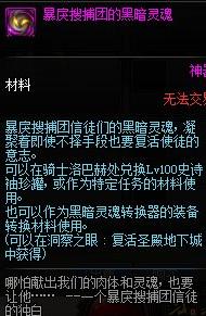1、获得方法:暴戾搜捕团的黑色灵魂这个材料道具需要在洞察之眼:复活圣殿地下城中通关获得;
