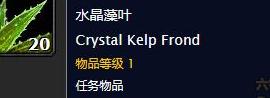 2、击杀后33.0%掉落【水晶藻叶】,是任务【收集海藻】所需的任务物品。