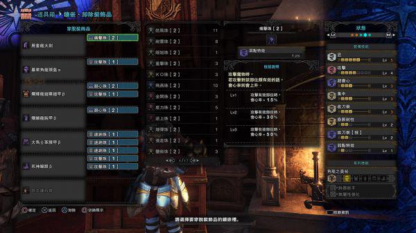 这套配装完全就是按照以前的版本打法而设计的 ,拔刀3级第一斩加100会心(注意是加100,不是必定100) ,超会心必满!集中必满!拔刀必3,收刀随意........拔刀3蓄打中弱点的话还是有200左右的伤害,加上一击脱离战术带来的机动性,这套装也不是不能用,用来怀旧也是可以。