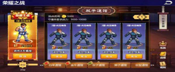 3、击破全部12座道馆时,将获得挑战荣耀王者的资格。战胜荣耀王者的格斗家,将取代对手成为新的荣耀王者。荣耀王者的战力会随着玩家的布阵而实时更新;