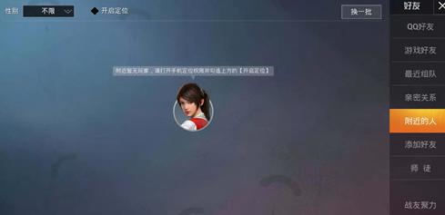 第一种方法就是进入好友列表中,选择其中“附近的人”在这个界面的上方我们可以看到一个“开启定位”的选项,默认是开启状态,我们只要直接点击一下就可以关闭,这样就不会出现在附近玩家的列表中了;