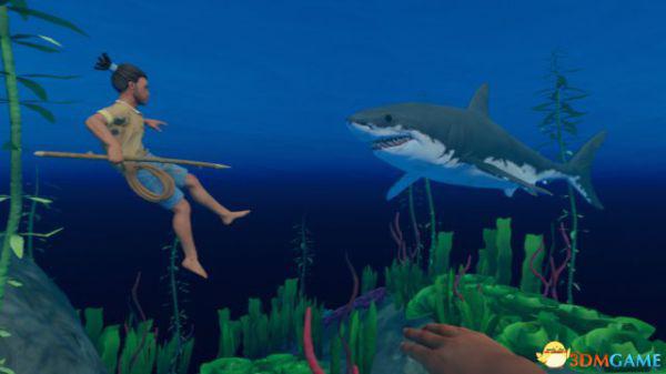 先准备好鱼饵,在岛附近抛锚。看到鲨鱼咬住诱饵,再跳下去,一个饵带脚蹼和饵带氧气瓶可以下潜两次,最多最后被咬一次。