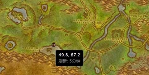 4、萨瑞鲁斯·法伯尼位于贫瘠之地鬼雾峰顶附近,坐标为(48.2,19.1),每4分35秒刷新一次。