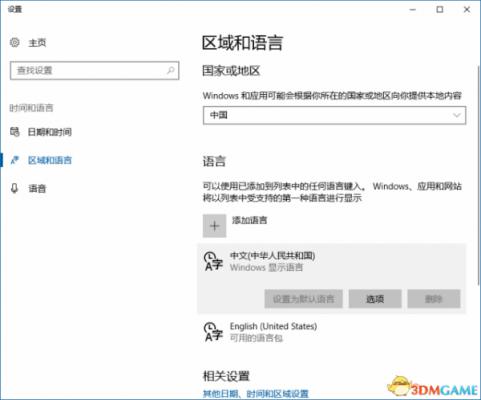 设置Win10“国家或地区”的方法