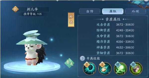 1、105级的宠物为刺儿爷、闪电貂、小浣熊;